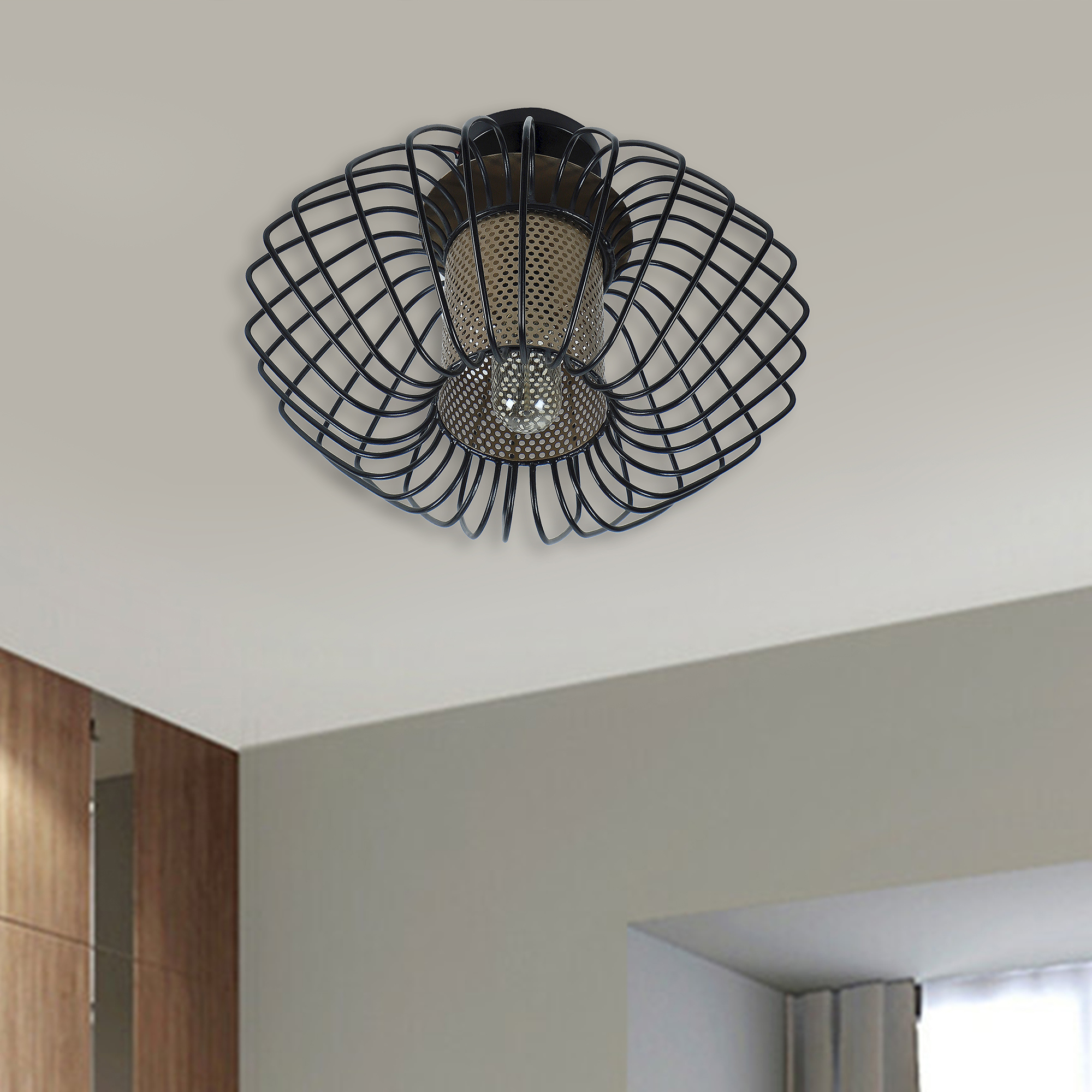 The hand carved metal base of the Pendent Lamp imparts an art of India, hand crafted by best Artisans. Finished by hand in a light hue, this lighting has a rustic appeal that works well with other decor in a room.